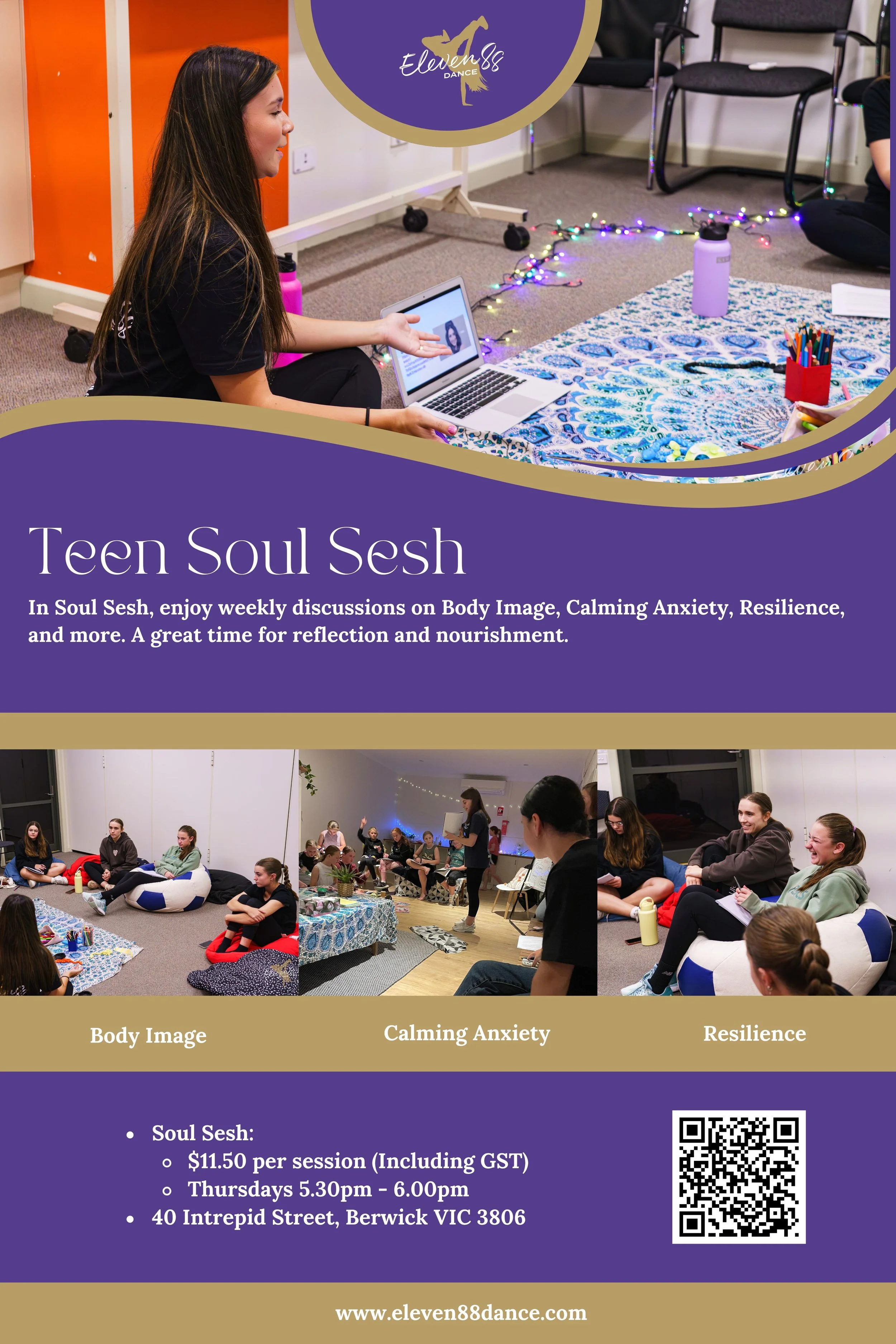 Every Thursday afternoon during the school terms, we run Dance and Soul Sesh programs, open to students from Kindergarten through to teens, right in the heart of the community.